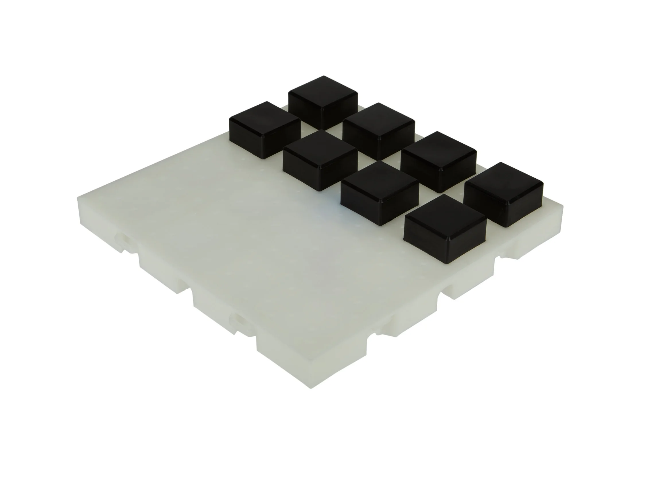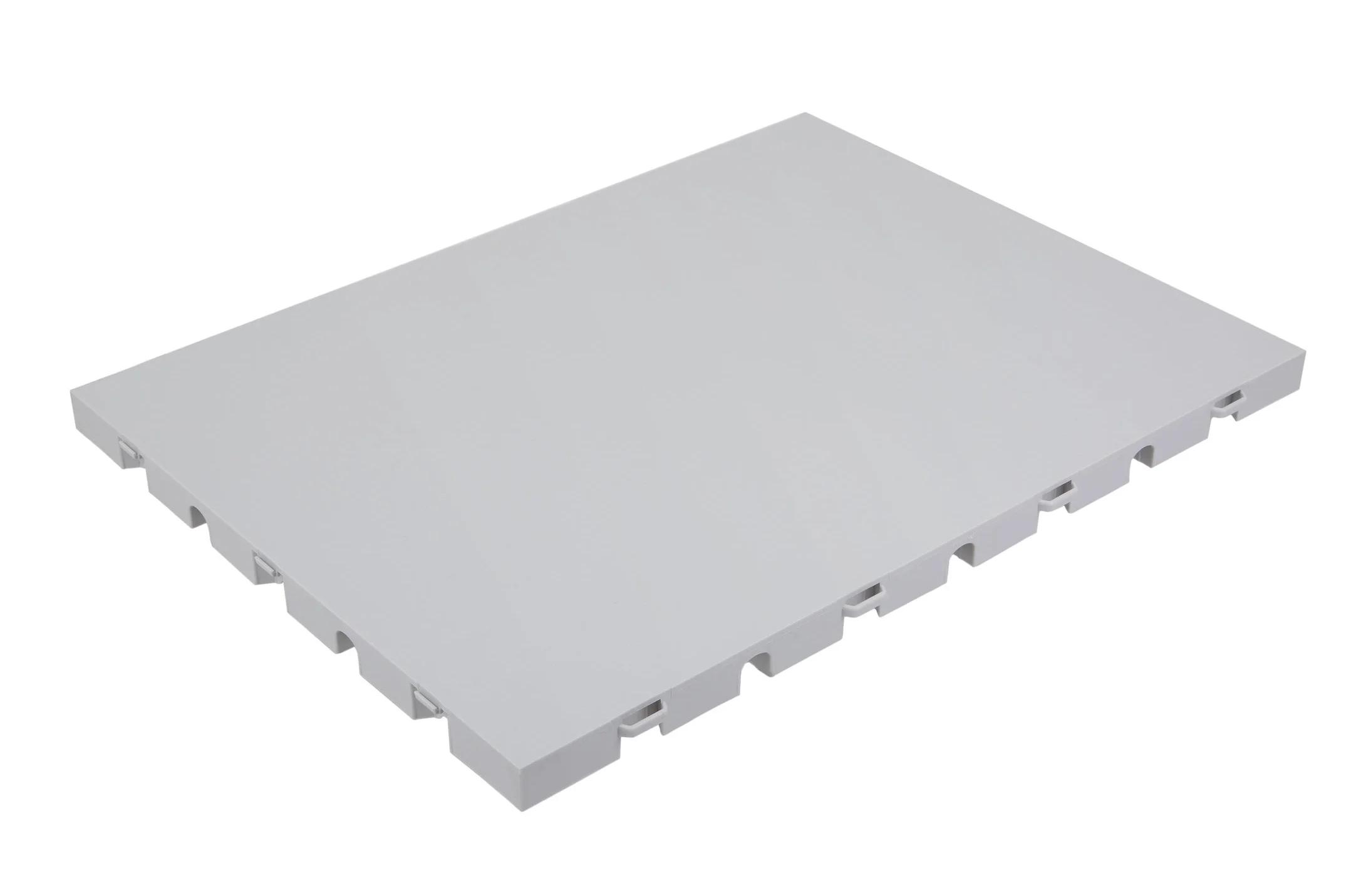 Transition Edging is recommended for pedestrian access points and areas where wheeled equipment or pedestrians are expected to come on to the floor. Edging snaps to the floor using the same connection method as the tile themselves.